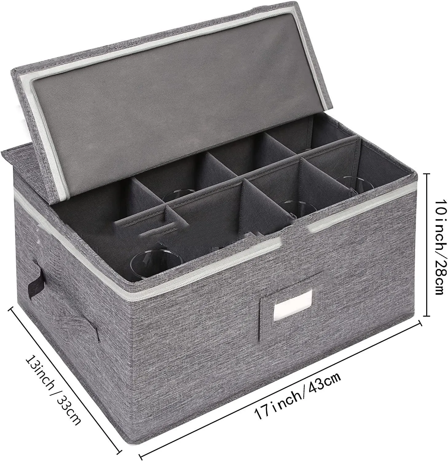 This storage box is perfect not only for wine glasses but also for other types of stemware such as champagne flutes, martini glasses, cocktail glasses, and more. The flexible divider system can be adjusted to fit different glass shapes and sizes, making it versatile and ideal for storing a variety of glassware collections.