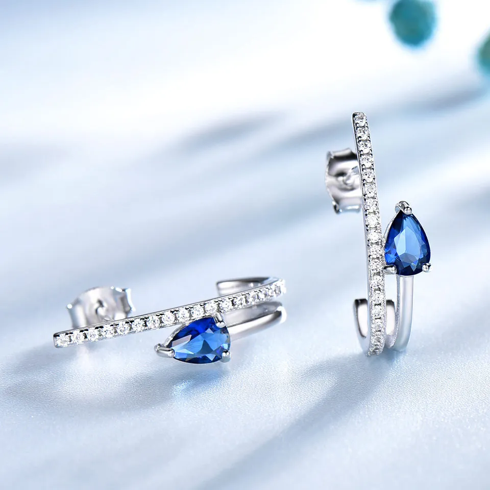 Sterling Silver Drop Luxury Earrings Sapphire