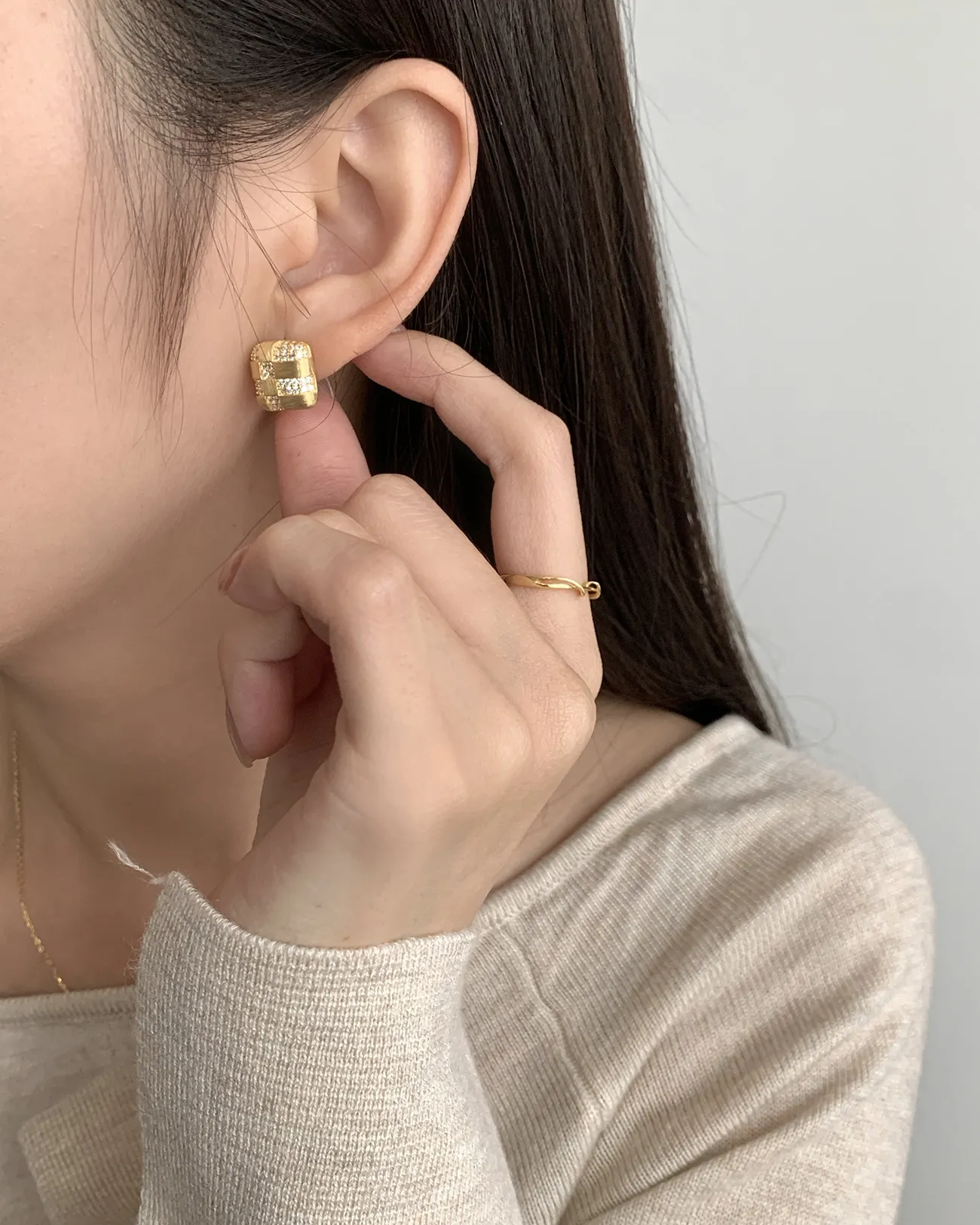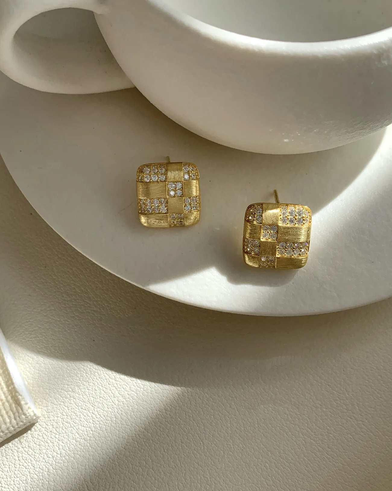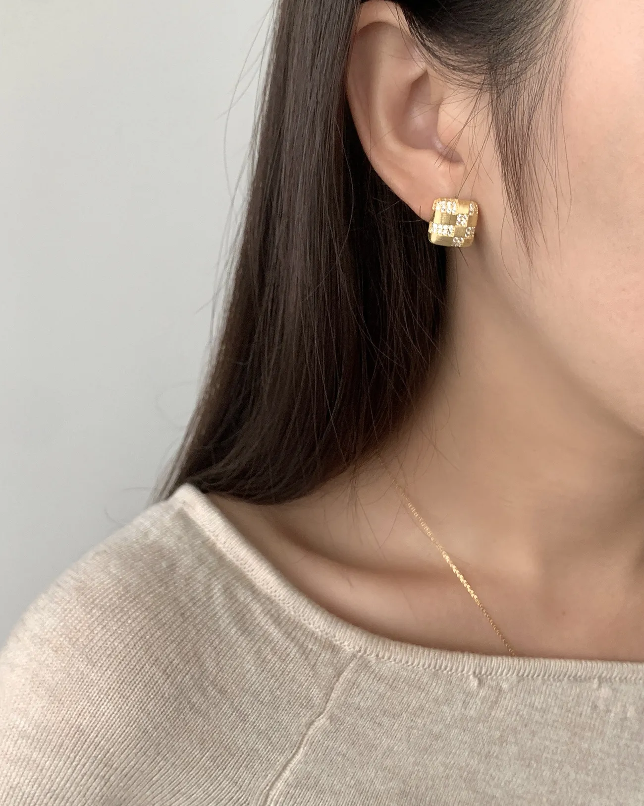 The modern geometric square shape paired with finely inlaid detailing makes these earrings a perfect balance between contemporary design and timeless elegance. The clean lines and sharp angles create a visually striking look, while the subtle sparkle adds a layer of luxury without being overwhelming.
