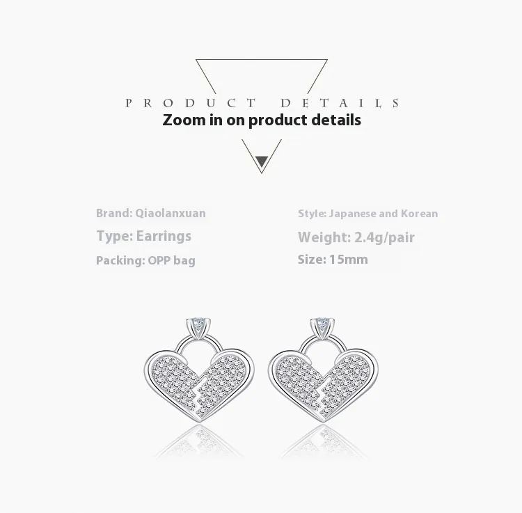 Color: full rhinestone zircon Heart-shaped stud earrings (white gold plated color retention)