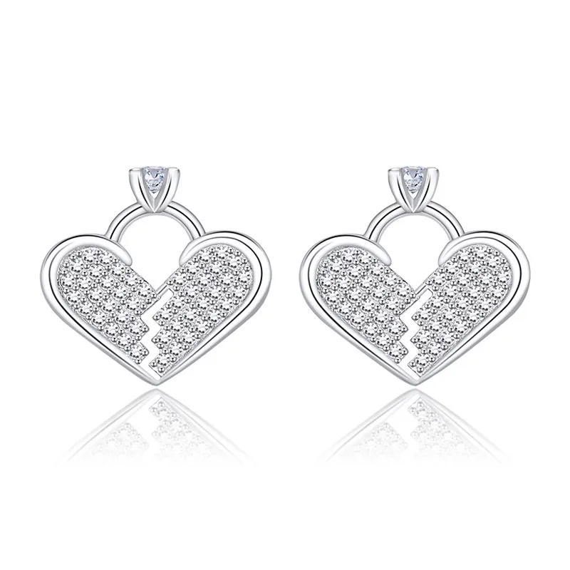 Color: full rhinestone zircon Heart-shaped stud earrings (white gold plated color retention)