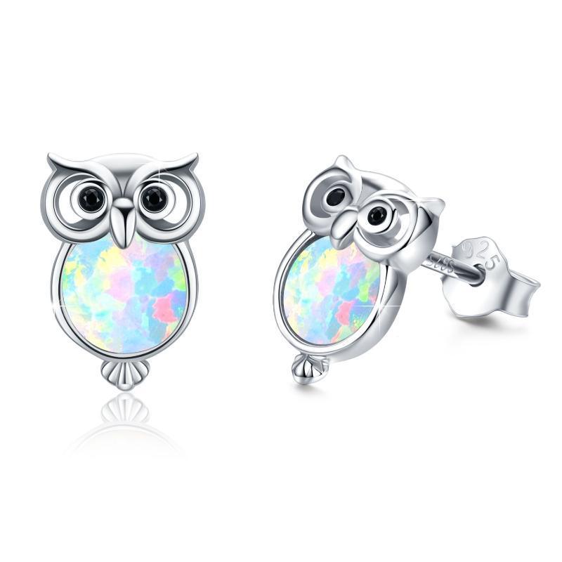 Sterling Silver Owl Opal Stud Earrings – Playful Design with Sophisticated Charm
