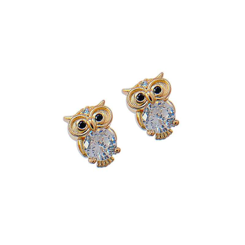 Color: Owl white diamond earrings (copper plated gold), owl pink diamond earrings (copper plated rose gold)