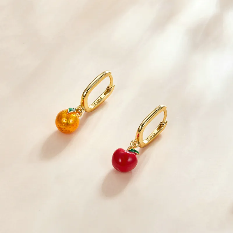Sterling Silver Single Stud Earrings Oil Drop Orange