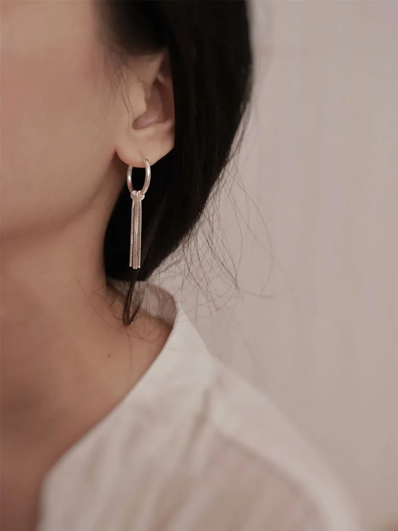 Sterling Silver Tassel Ear Clip Earrings Minimalist High Sense