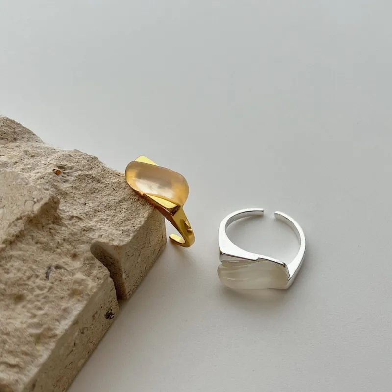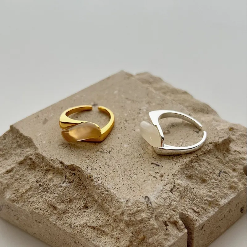 Sterling Silver White Chalcedony Modern Geometric Ring Minimalist Statement Jewelry for Women