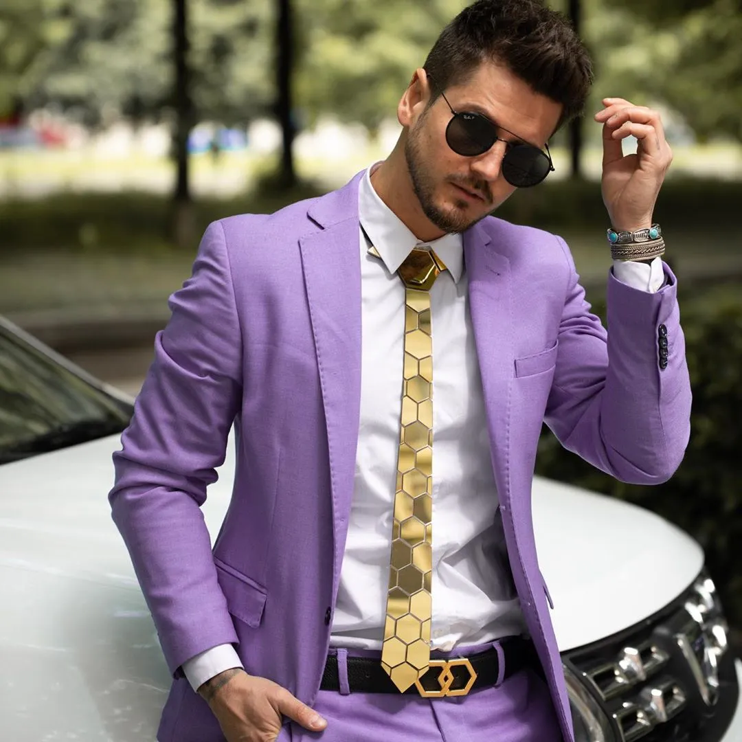 Stitching Geometric Plaid Gold Tie Men's Suit Clothing