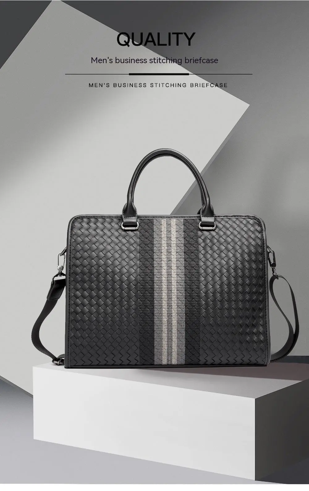 Stitching Woven Business Casual Briefcase Men's Shoulder Crossbody Computer Bag
