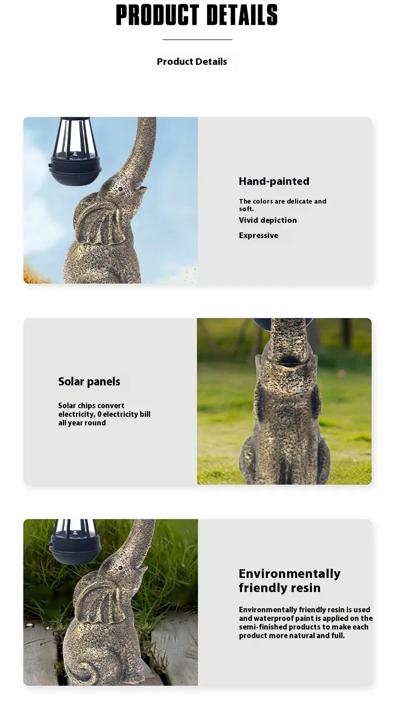 The Stone Elephant Resin Lantern Ornament is designed for versatility, making it an excellent choice for both indoor and outdoor environments. Its durable resin construction is weather-resistant, so it can withstand the elements if placed in your garden, on the balcony, or by the poolside.