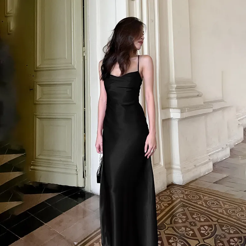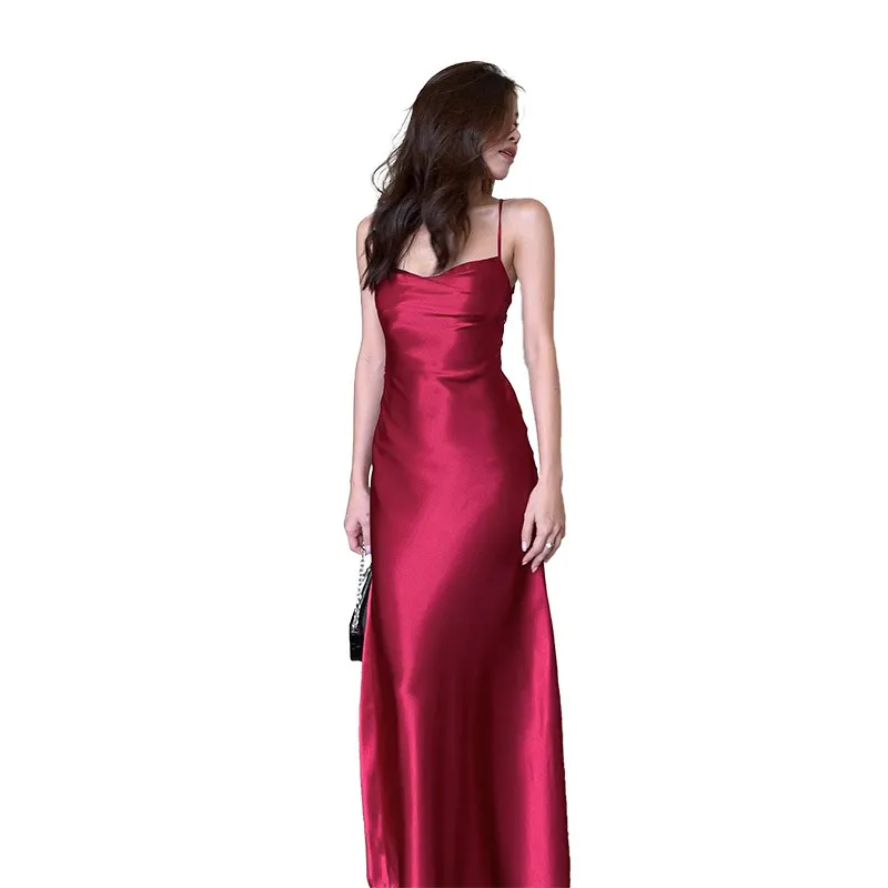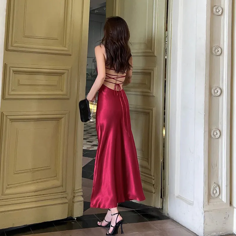 Strap Satin A Swing Backless Dress Women