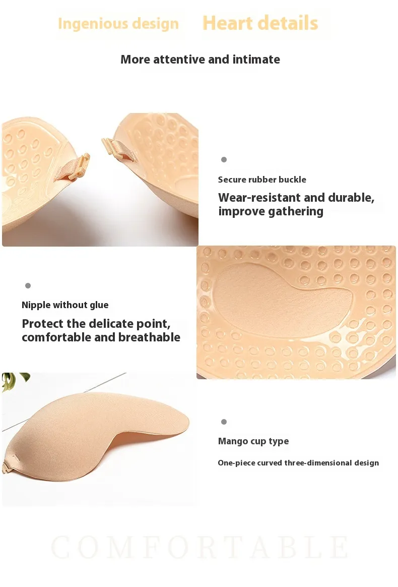 Equipped with advanced adhesive technology, the Strapless Backless Bra stays securely in place, even during extended wear. The skin-friendly adhesive ensures that the bra stays firm and comfortable, offering reliable support without the need for traditional straps or back clasps.