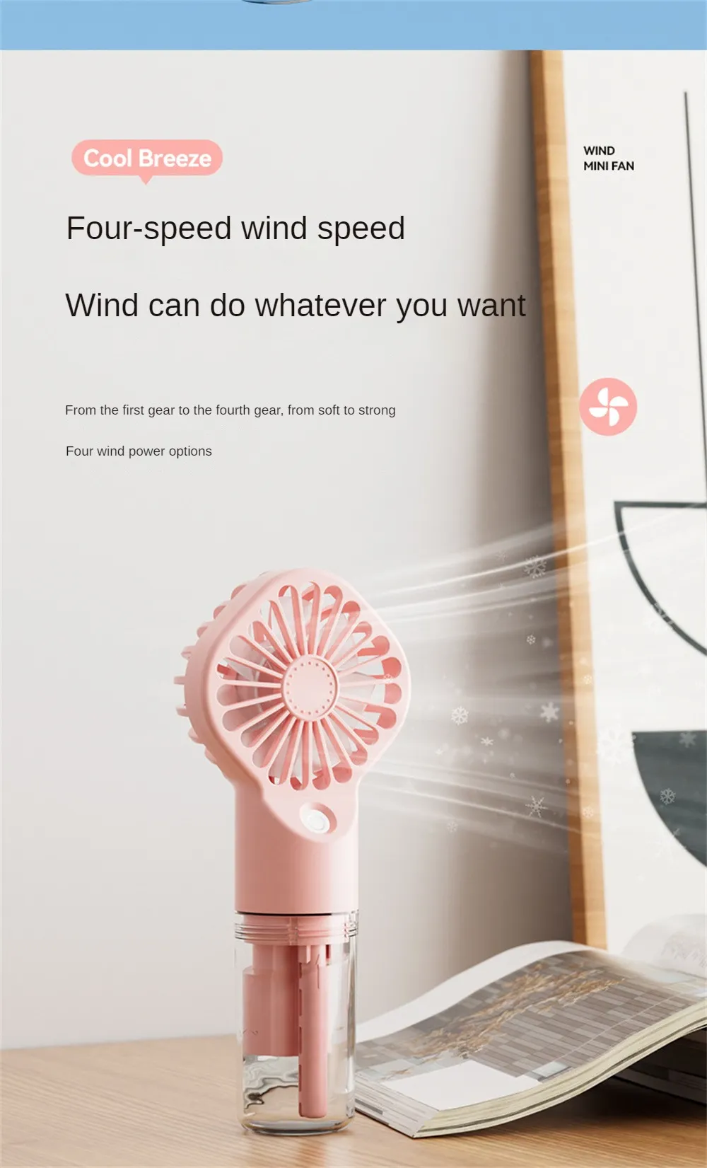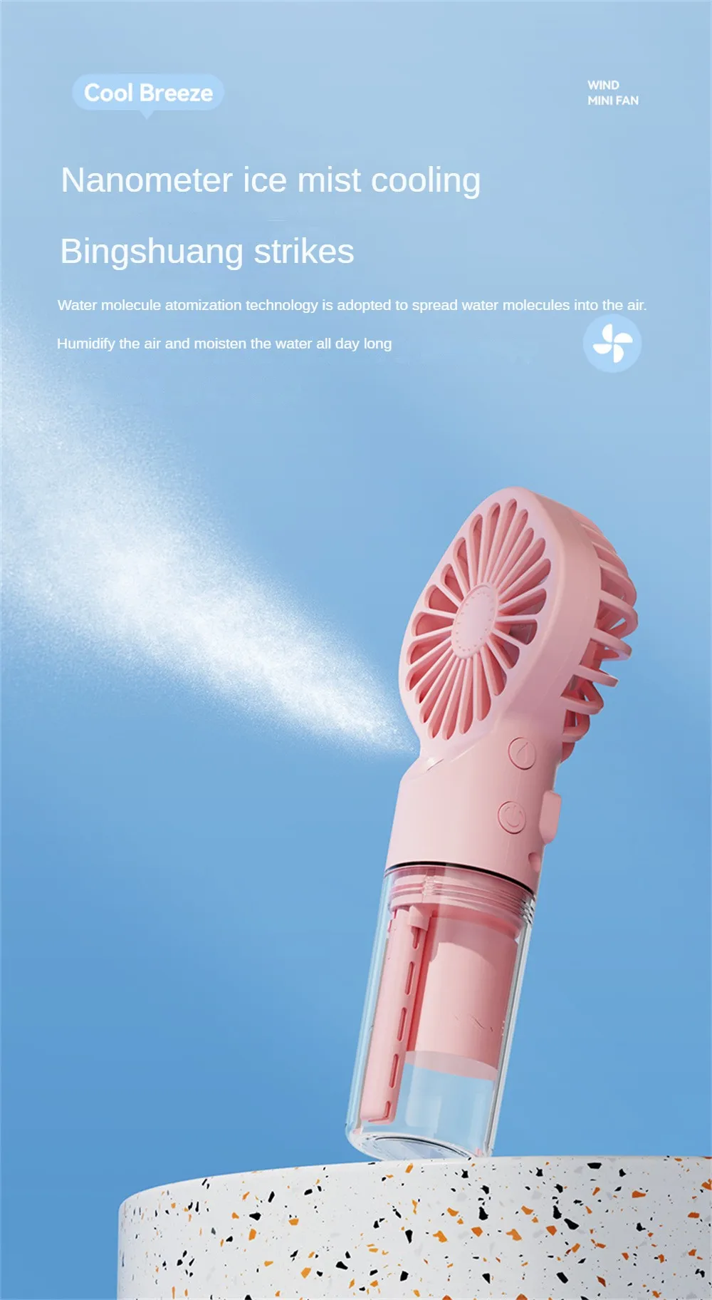 1. Fast cooling, atomization, hydration, desktop fan, humidification, water supplement, nano spray