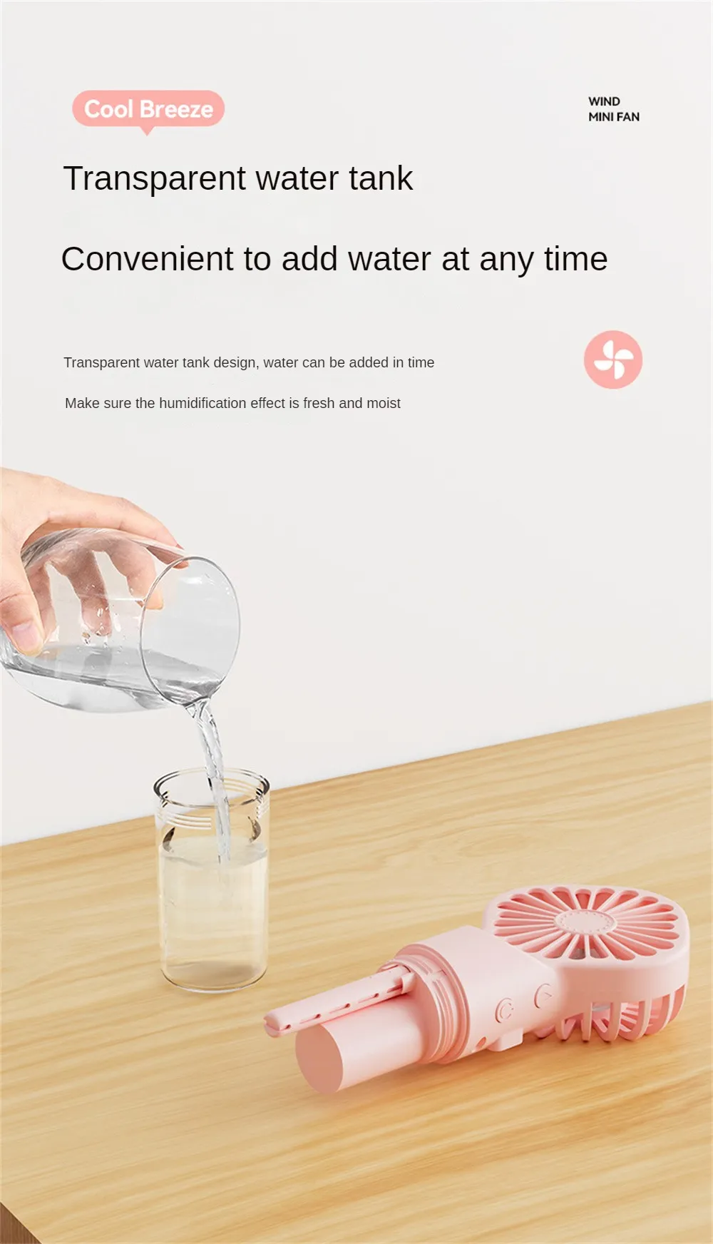 with the cool air, creating an instant refreshing effect. This dual-function design not only cools you down but also moisturizes your skin,