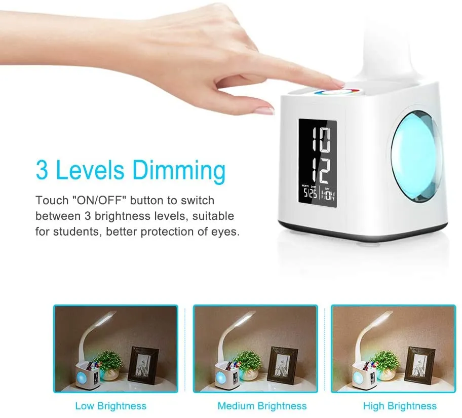 Continuous dimming, pen holder and desk lamp, USB charging.
