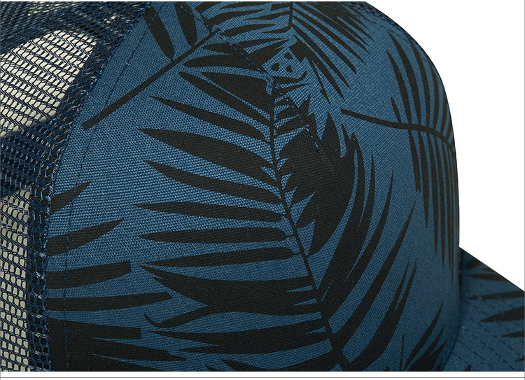 Stylish Palm Leaf Print Mesh Trucker Cap