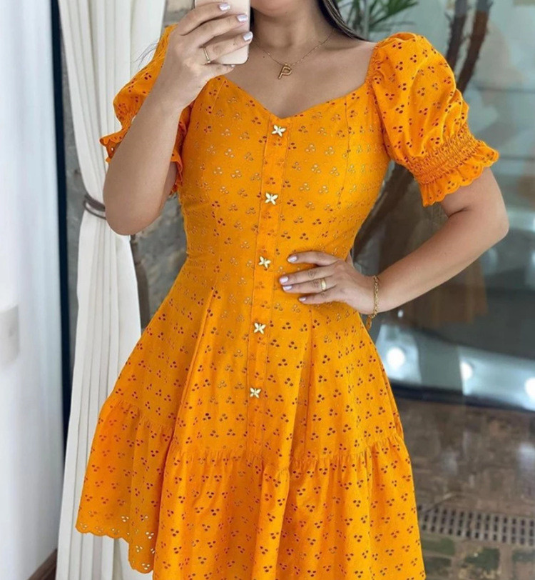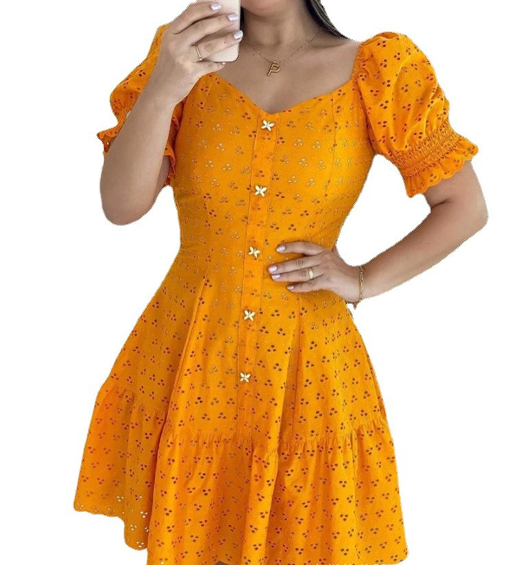 Stylish Women's Short Sleeve Waist-Controlled Hollow Dress, Trendy and Elegant