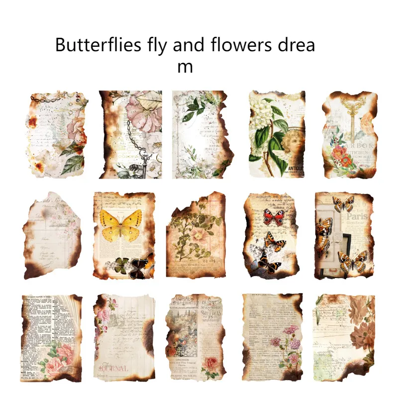 The Sugar Poem Retro Anomalous Burnt Material Paper is a distinctive and artistic paper series designed for those who appreciate the beauty of imperfections and the power of creativity. Featuring burnt fragments and anomalies, this paper brings an old-world charm and a touch of artistic flair to any project. Each sheet in this series is crafted with a unique, burnt appearance, creating an eye-catching texture perfect for scrapbooking, journaling, mixed media art, and more. Whether you're an artist, a crafter, or a designer, this burnt paper material offers endless creative possibilities for personal or professional projects.