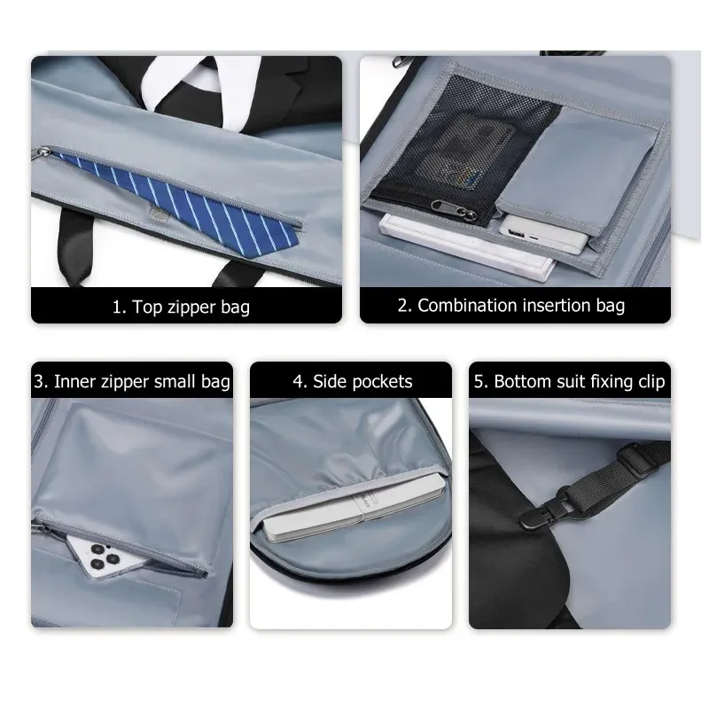 This separation is crucial for maintaining a professional appearance, especially when traveling long distances or through busy airports. The suit bag with shoe compartment keeps your entire formal outfit in one place, so you never have to worry about misplacing pieces or mixing shoes with your clothes.