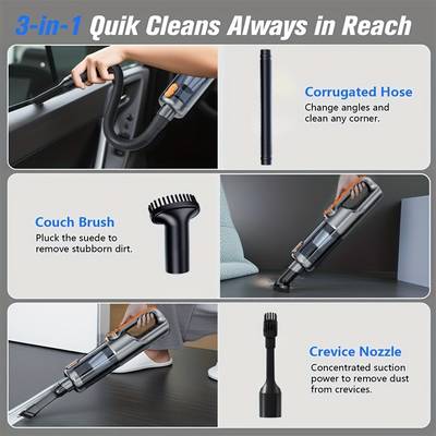 With LED lighting, you can easily clean in dark spaces or during nighttime, and the accessory kit allows you to tackle different types of cleaning tasks, from upholstery to hard floors. Whether you're dealing with pet hair, food crumbs, or general dust, this handheld vacuum is up to the task.