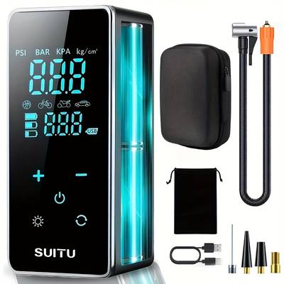 Its compact and portable design makes it easy to store in your car, garage, or bike bag, while the rechargeable battery ensures that you can use it multiple times before needing to recharge. Whether you're dealing with an emergency flat or simply performing regular tire maintenance, the Suitu Fast-Charging Tire Air Compressor is a must-have tool for any vehicle owner.