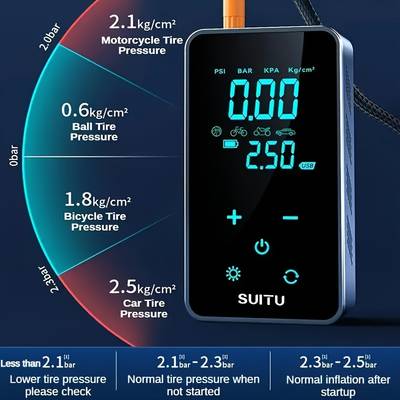 The Suitu Portable Cordless Tire Inflator stands out as an incredibly practical and versatile tool. With its digital pressure gauge, USB charging capability, and LED light, it goes beyond the typical tire inflator. Its lightweight, compact design makes it easy to carry, while its rechargeable battery ensures that you’re always prepared for an emergency. Whether you're a car owner, motorcyclist, or outdoor adventurer, this inflator provides a quick and efficient solution to keep your tires properly inflated and safe for the road.