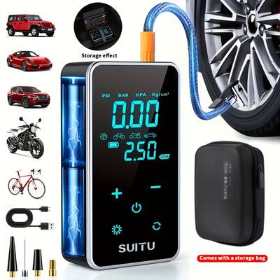 The Suitu Portable Cordless Tire Inflator with Digital Pressure Gauge & LED Light is a powerful, portable, and reliable solution for anyone needing to inflate tires on the go. With features like a rechargeable lithium battery, USB charging, digital pressure gauge, and LED light, it provides convenience and efficiency for both professional and personal use. Whether you're dealing with a roadside emergency, maintaining your vehicle, or preparing for an outdoor adventure, this inflator is a must-have tool for anyone who values safety and efficiency on the road.
