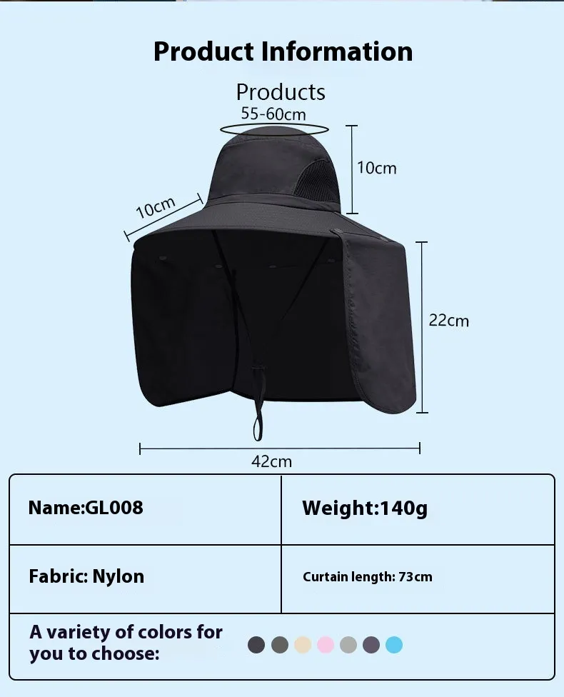 Function: sun protection, neck protection, quick-drying, breathable, waterproof, windproof, sunshade