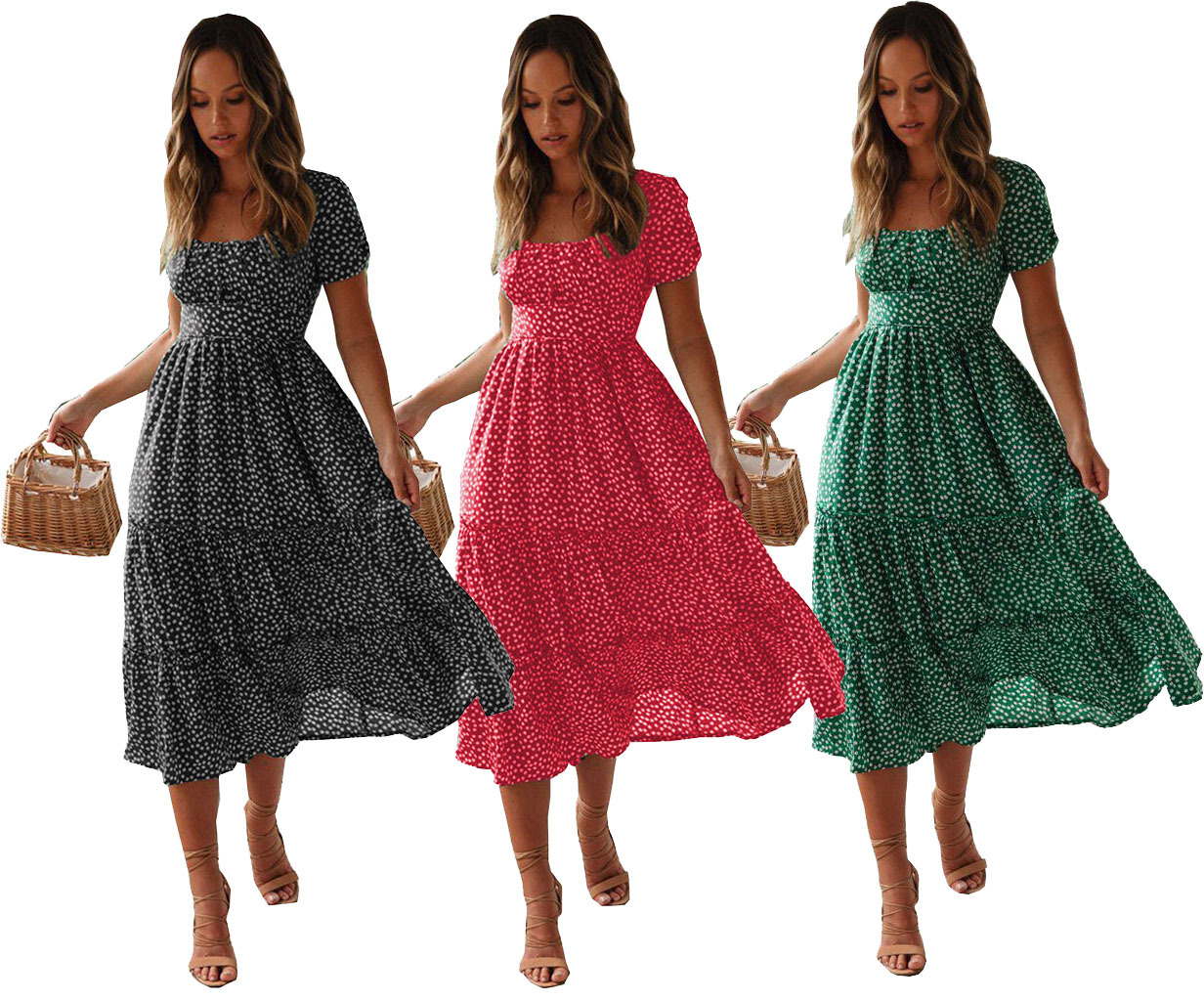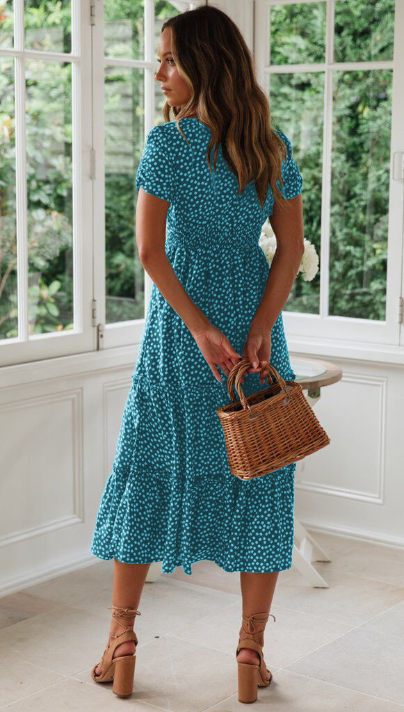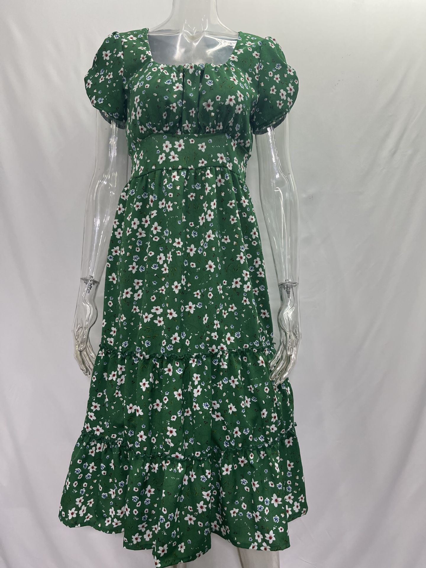 Summer Puff Floral Printed Long Dresses