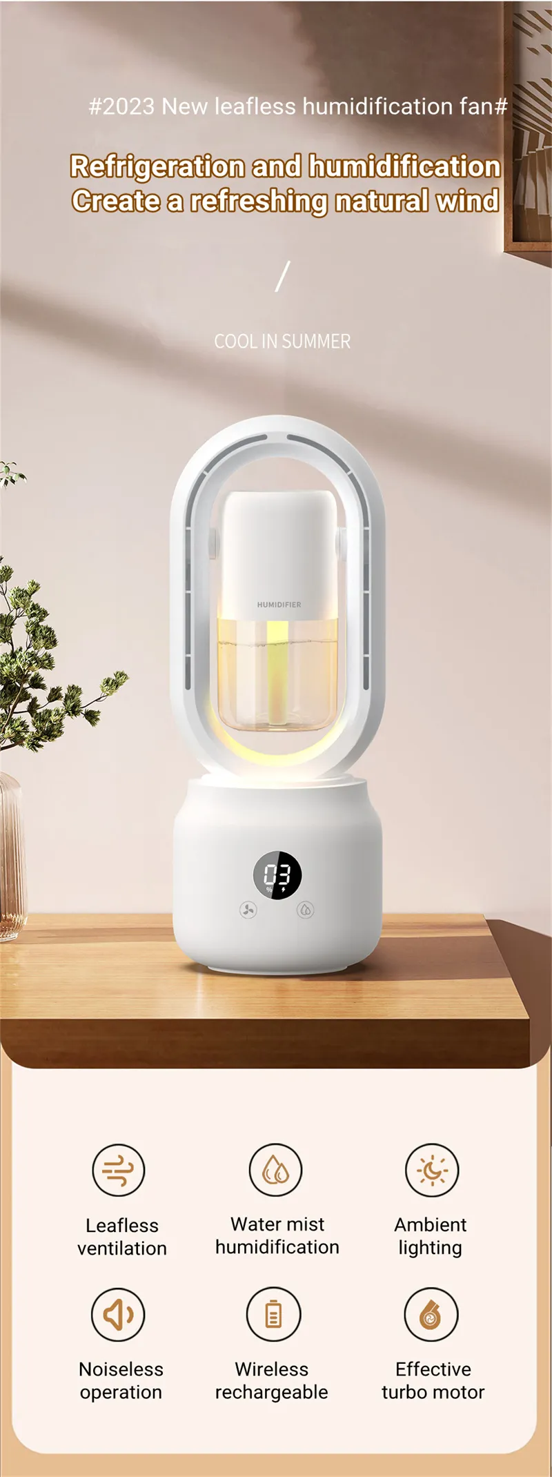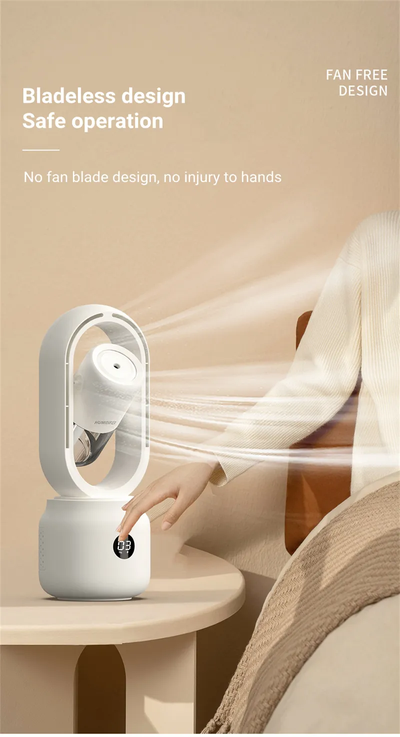 Summer Water Cooled Spray Mist Electric Fan USB Rechargeable Portable Wireless Air Humidifier Bladeless Ventilator Table Fan