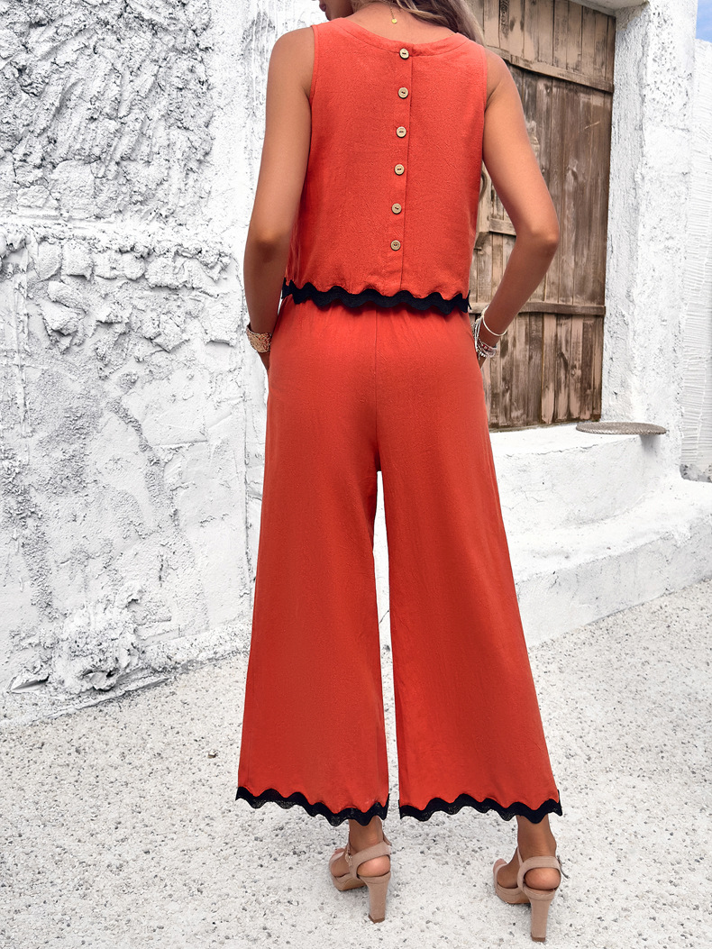 Elevate your summer wardrobe with the stylish and comfortable Summer Wave Print Sleeveless Top and Trousers Set. Designed for the modern woman, this two-piece set offers a perfect blend of fashion and functionality, making it an ideal choice for casual outings, beach vacations, and everyday wear.