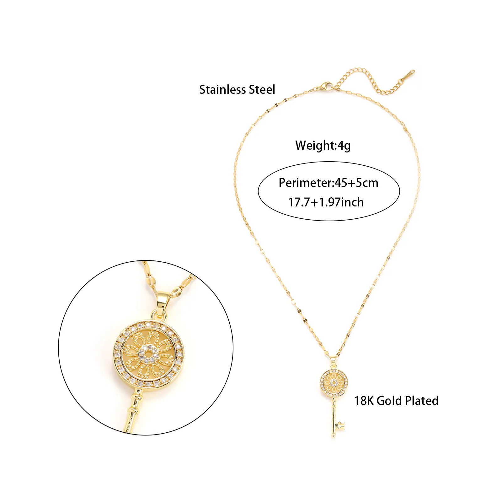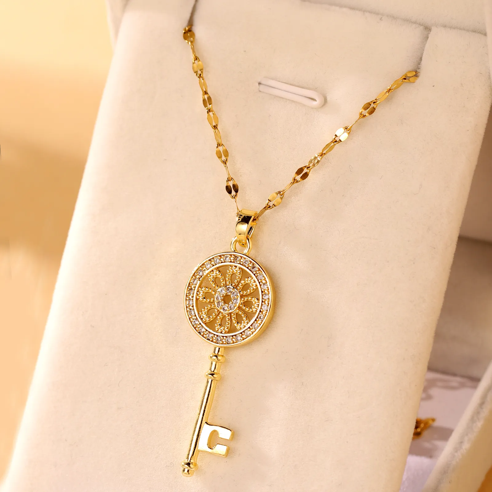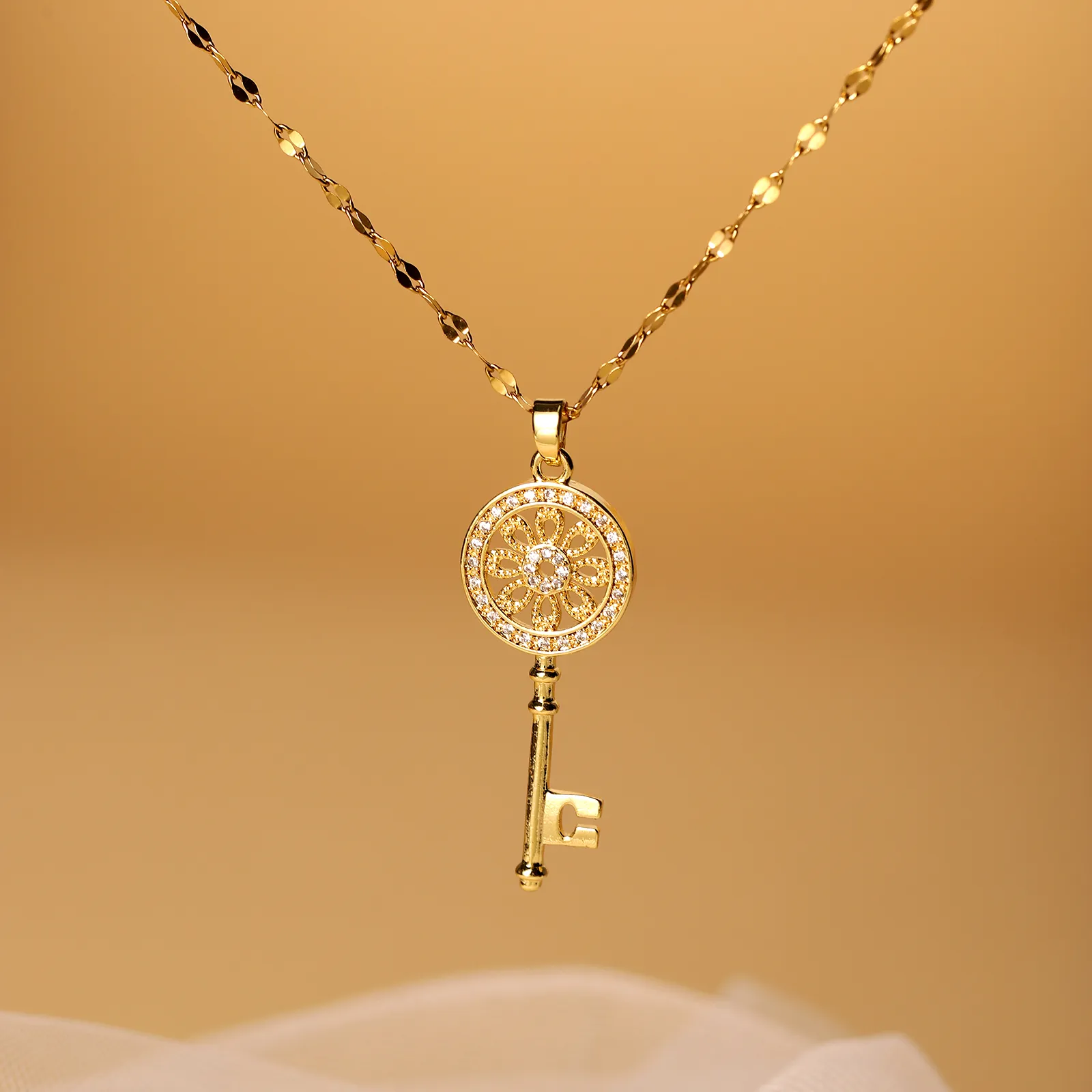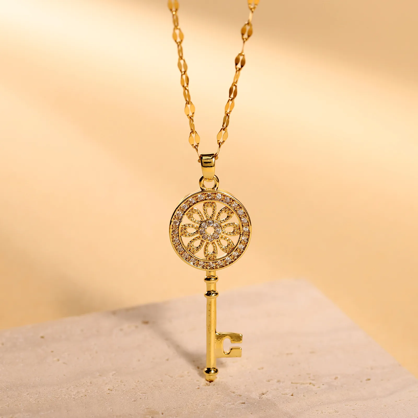 Sunflower Key Necklace For Women, Simple And Fashionable, Luxury And Elegant, Micro Set Zircon Pendant Necklace