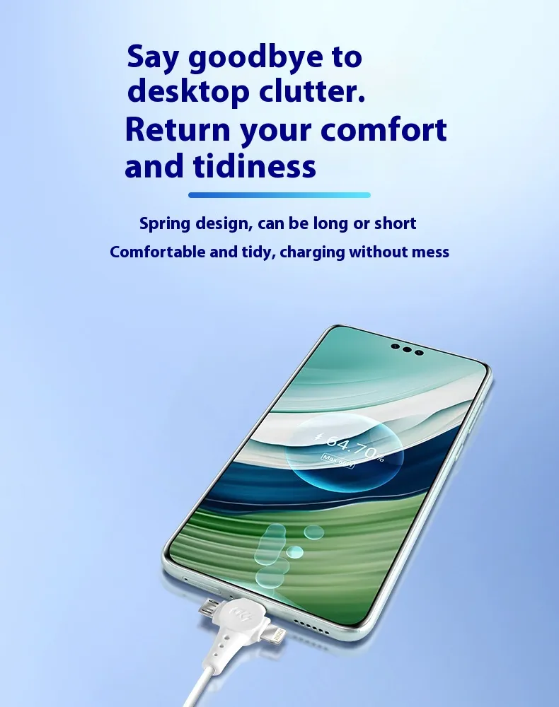Designed with a spring telescopic structure, this cable is compact, tangle-free, and easy to carry. The retractable design keeps your workspace tidy and your cable organized, making it ideal for travel, commuting, or daily use.