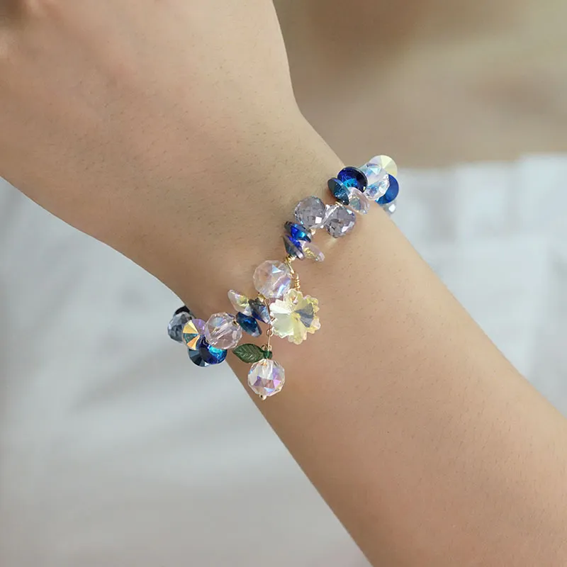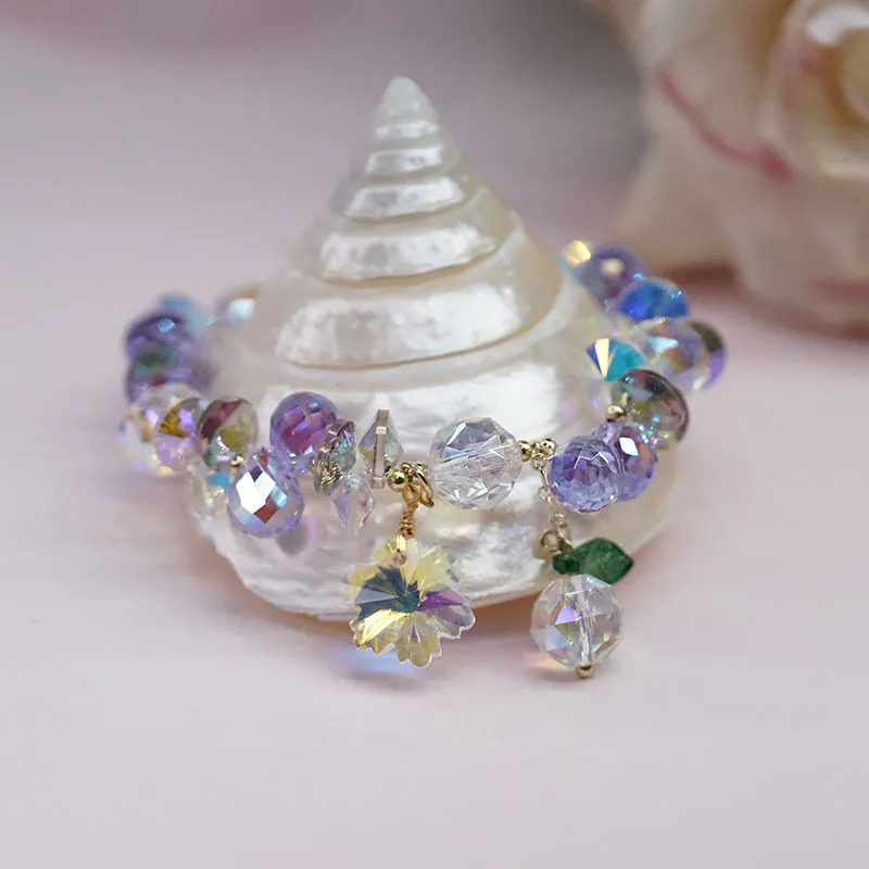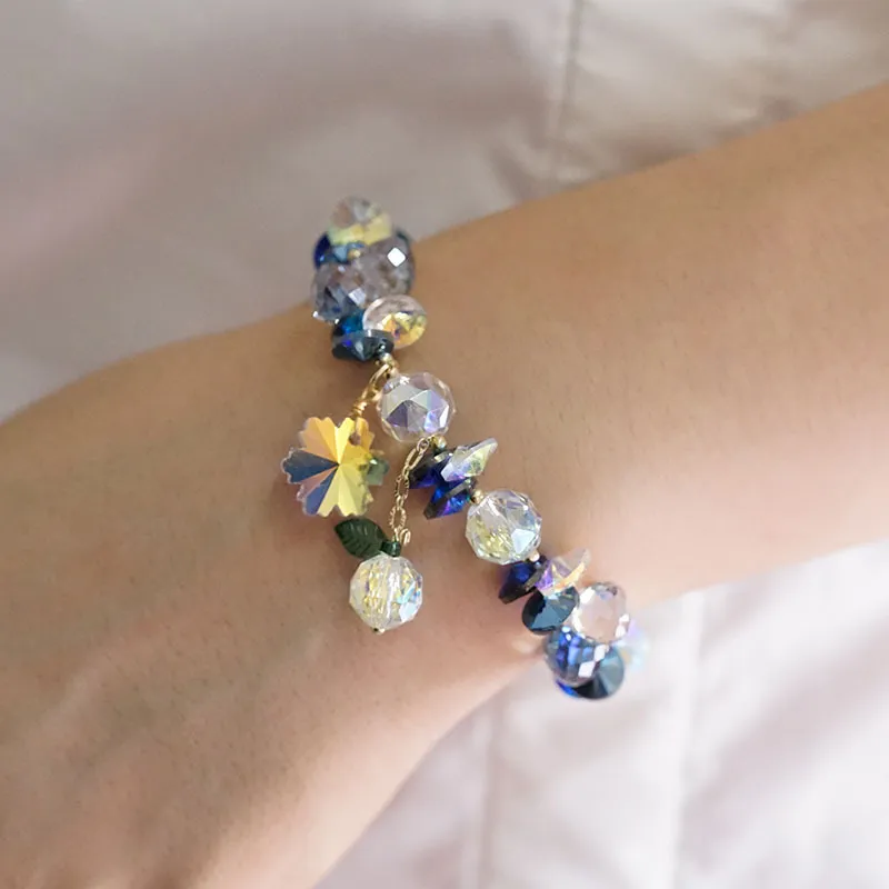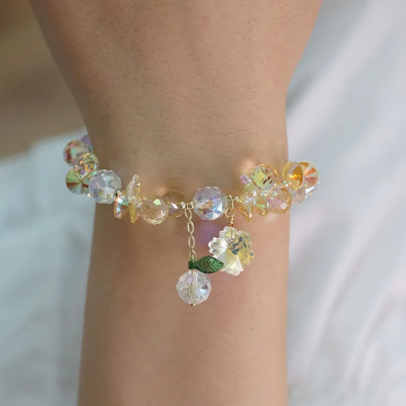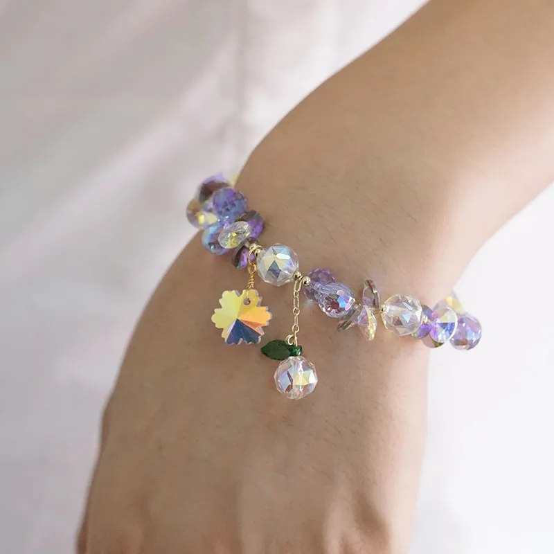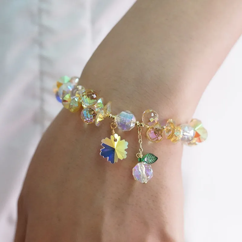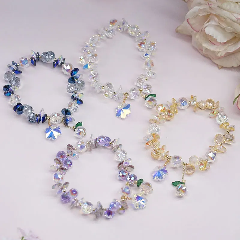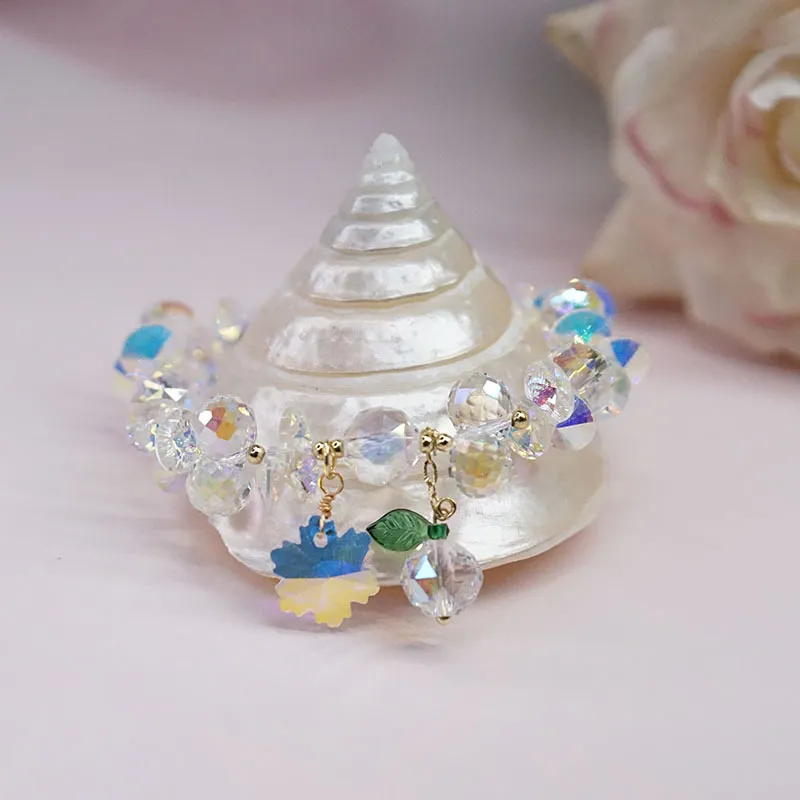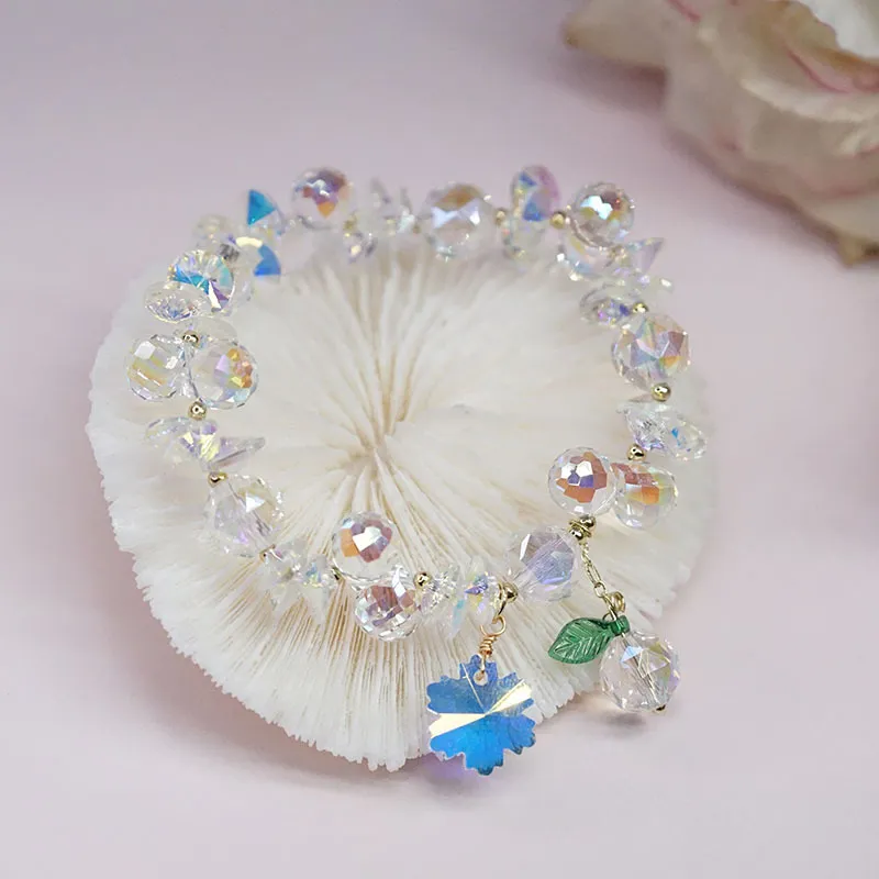 Super Shiny Crystal Bracelet Colorful Snowflake Mori Fairy Style Bracelet