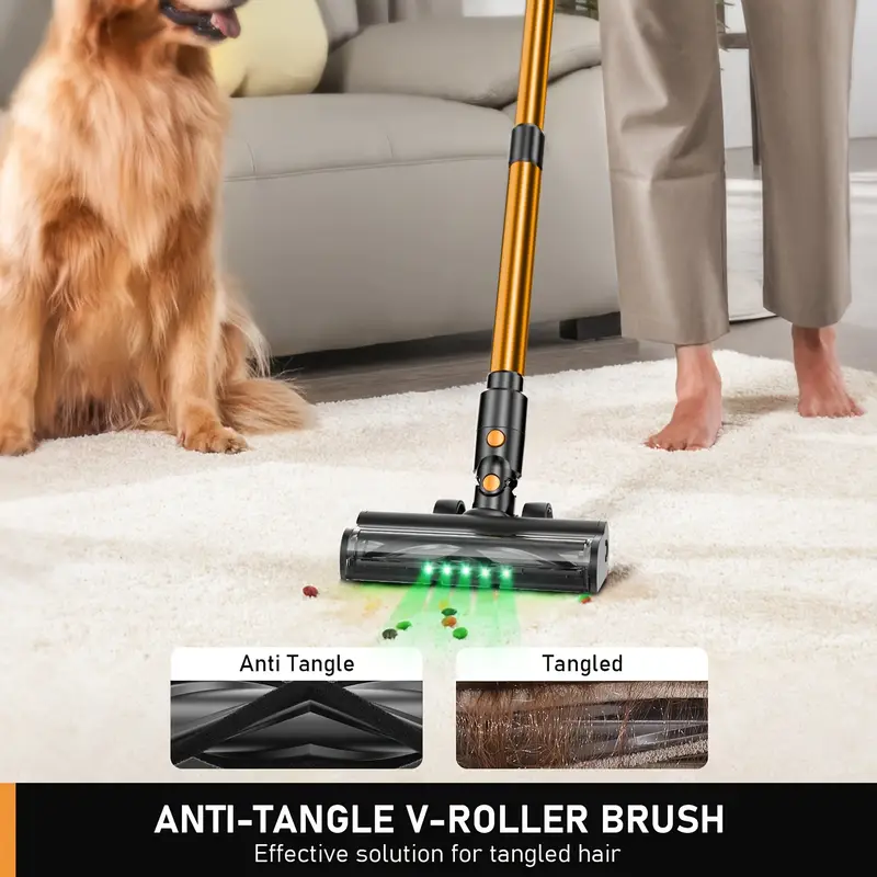 Anti-Tangle Brush: Designed to prevent hair and debris from tangling, ensuring smooth operation and consistent suction.