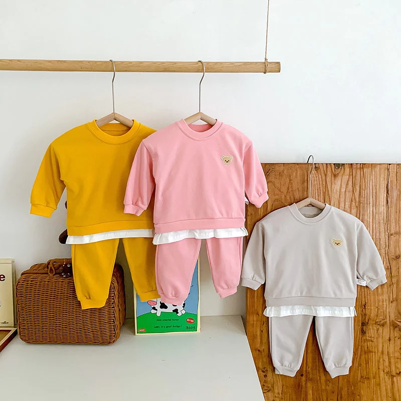 This adorable two-piece tracksuit set is perfect for infants and toddlers up to 5 years old. It's made from a lightweight and breathable double-sided velvet material and features a cute fox graphic print. The set includes a long-sleeve pullover top and elastic waist long pants that are easy to care for as they are machine washable. Please note that the set does not include a hood or shoes.