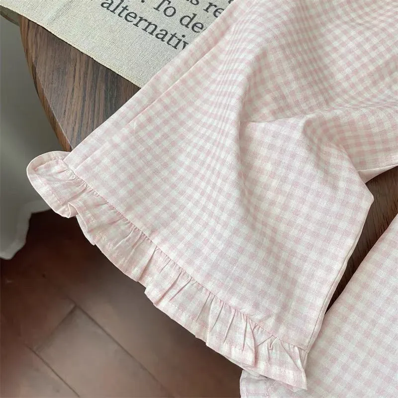 The Sweet Plaid Flared Wide Leg Pants Ruffled Two-piece Set is a stylish and fun outfit that combines trendy plaid with a flared, comfortable fit. Perfect for young girls who love to express their personality through fashion, this set includes a ruffled top and wide-leg pants, offering both comfort and flair. Whether for casual outings, family events, or playdates, this two-piece set is designed to make your child feel confident, stylish, and ready for anything.
