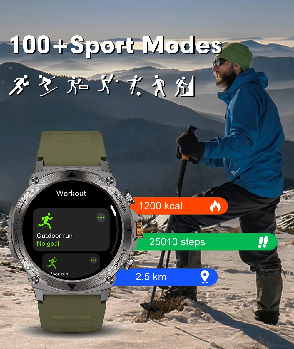 The T53 Bluetooth Calling Outdoor Three-Proof Sport Watch is the ultimate smartwatch for those who live an active, adventurous lifestyle. With features such as Bluetooth calling, health monitoring, three-proof durability, and a vibrant AMOLED display, this watch is more than just a timepiece—it’s a powerful fitness and connectivity tool. Whether you're running, hiking, swimming, or simply navigating through your daily routine, the T53 has you covered with its reliable performance and stylish design.