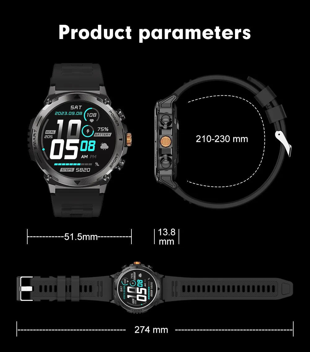The T53 Smartwatch is perfect for those who need a durable, high-performance watch that can handle the demands of an active lifestyle. Whether you’re into fitness tracking, outdoor adventures, or simply need a connected device for daily use, this smartwatch provides all the essential features you need. Its three-proof design, health monitoring capabilities, and Bluetooth calling make it the ideal choice for men and women who need a watch that can keep up with them.