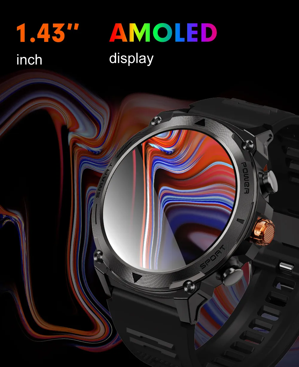 Luminous AMOLED Display: The 1.43-inch AMOLED screen ensures vibrant colors and sharp visuals, making it