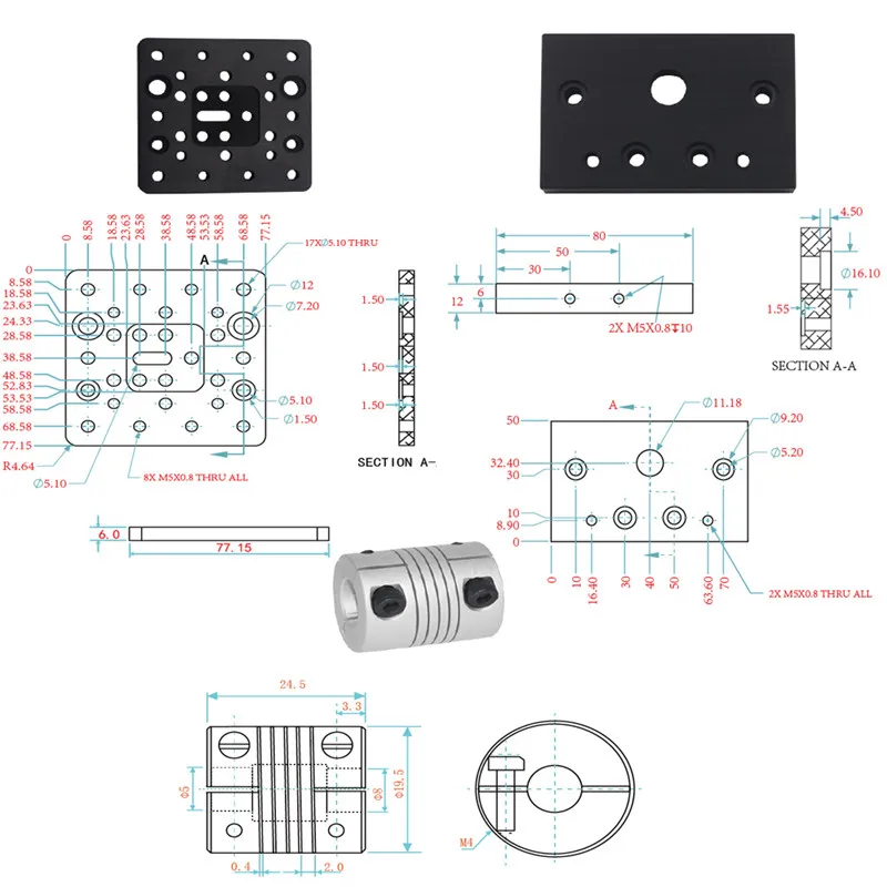 Nut Compatibility: T8 lead screws are compatible with T8 nuts, which have matching threads and a smooth sliding surface.