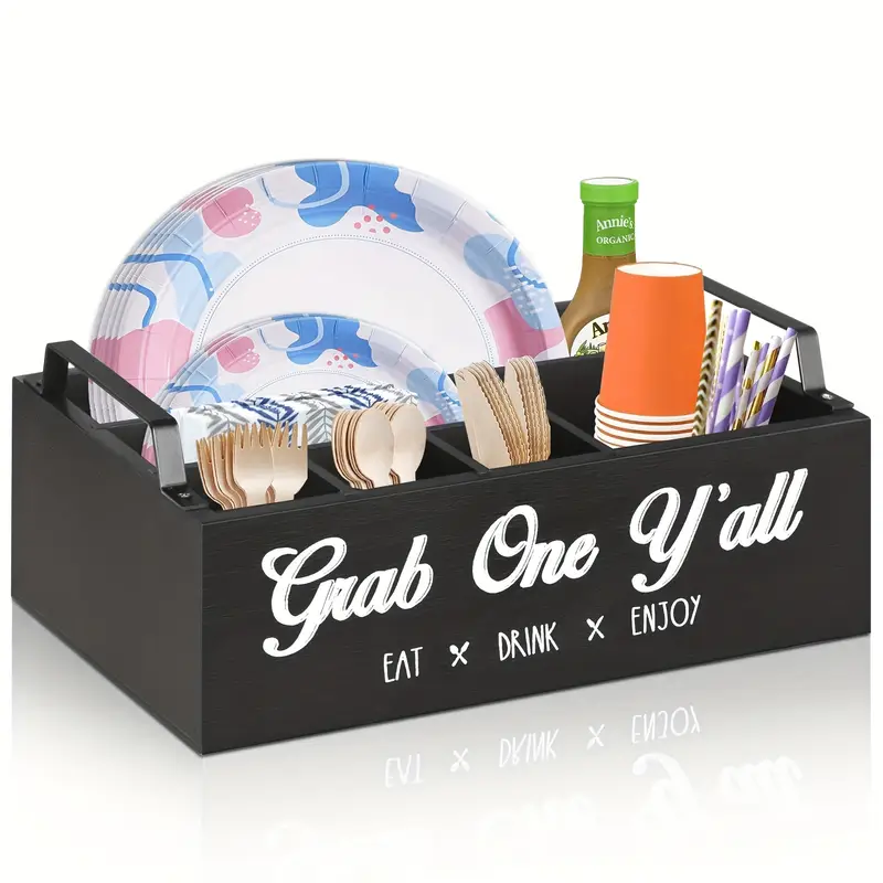 Families will love the convenience of this table caddy. It keeps everything organized, from napkins to condiments, making it ideal for quick meals and family dinners. No more losing track of your utensils or looking for napkins—everything is neatly organized and within reach.