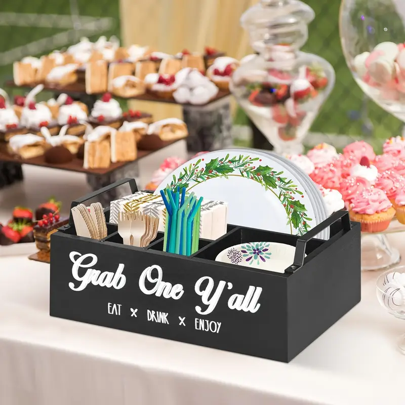 Our Table Caddy with Napkin Holder is designed with both functionality and style in mind. Whether you're hosting a dinner at home, having a family meal outdoors, or setting up a buffet, this caddy ensures that everything stays organized. Made from durable materials, it is built to last while maintaining a modern, sleek appearance.