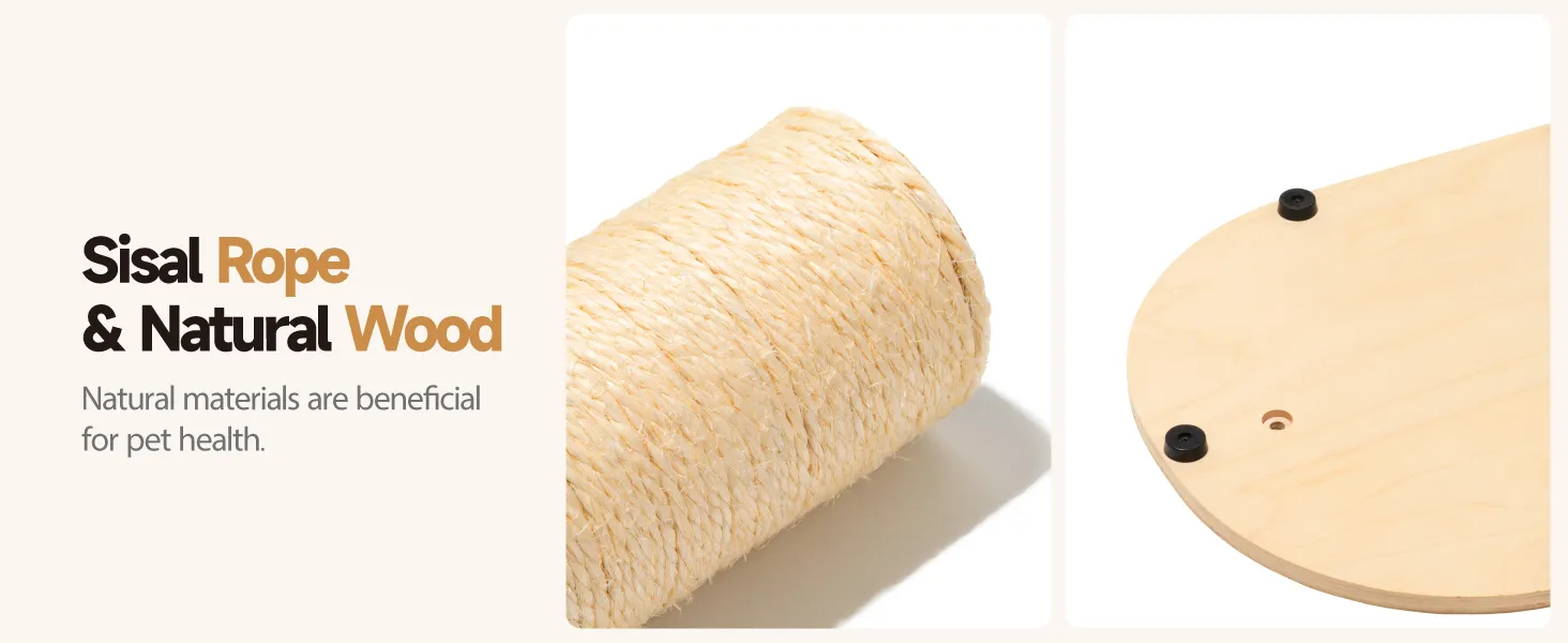 - Sturdy and Long-lasting: The base is reinforced with multiple layers of birch wood panels and features 2 secure fixtures on top for stable support. Each of the 5 scratching posts is wrapped in sisal rope, ensuring cats can play without slipping, providing a secure environment