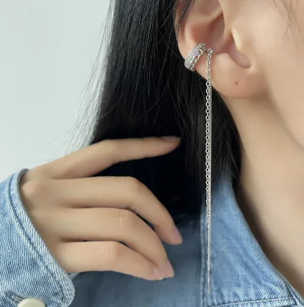 Tassel Chain Long Ear Clip Without Piercing One Style For Dual-wear