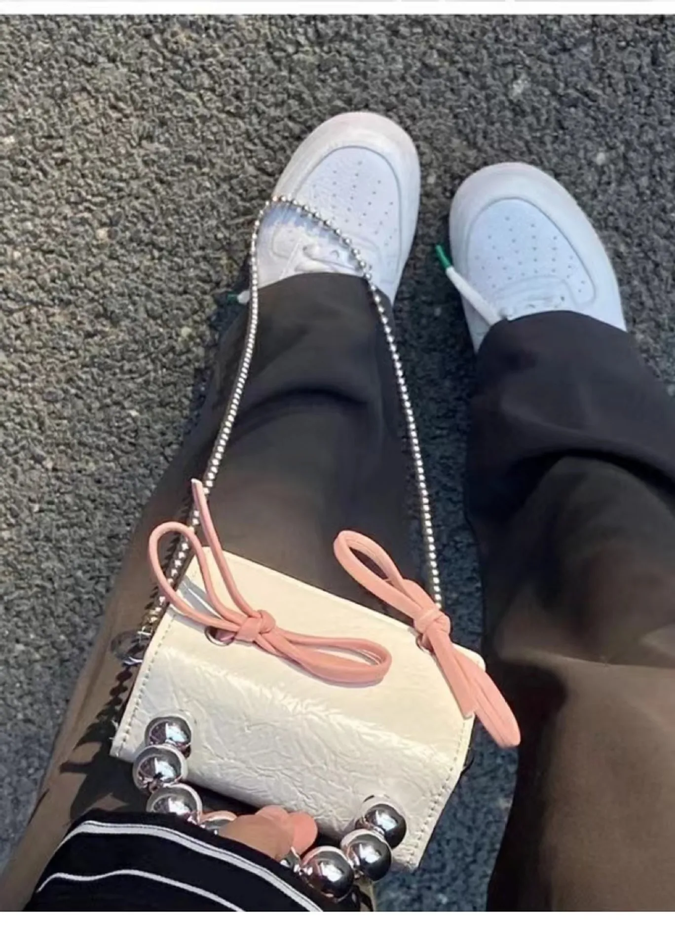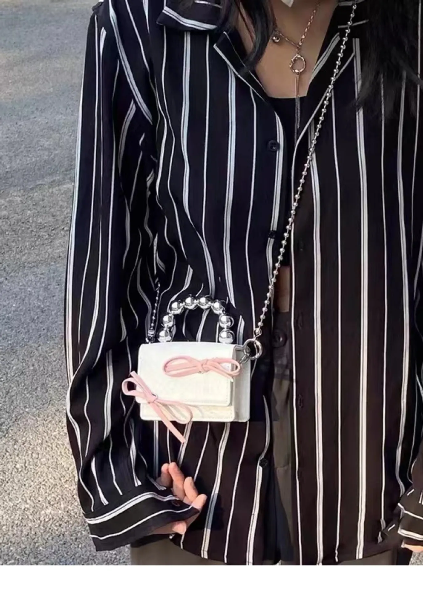 Textured Cute Bow Mini Chain Handbag