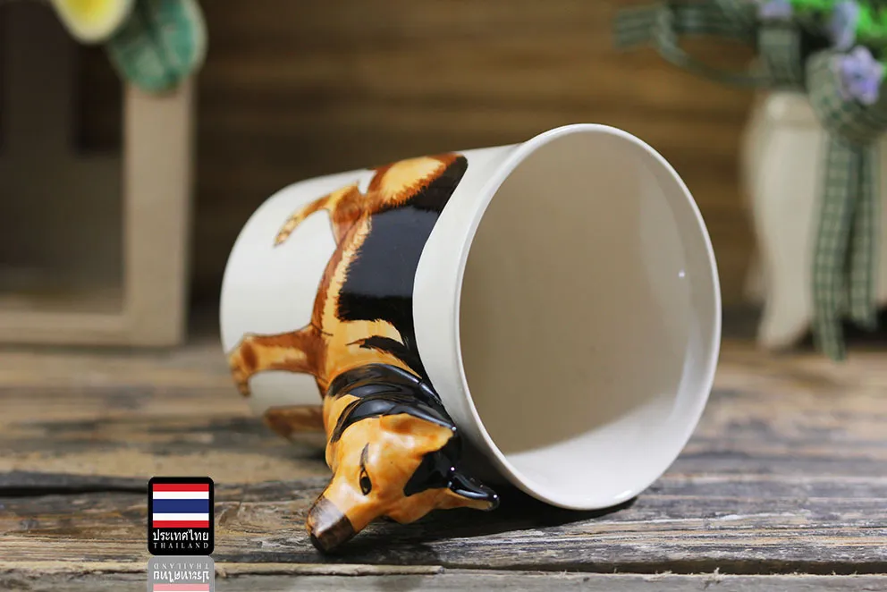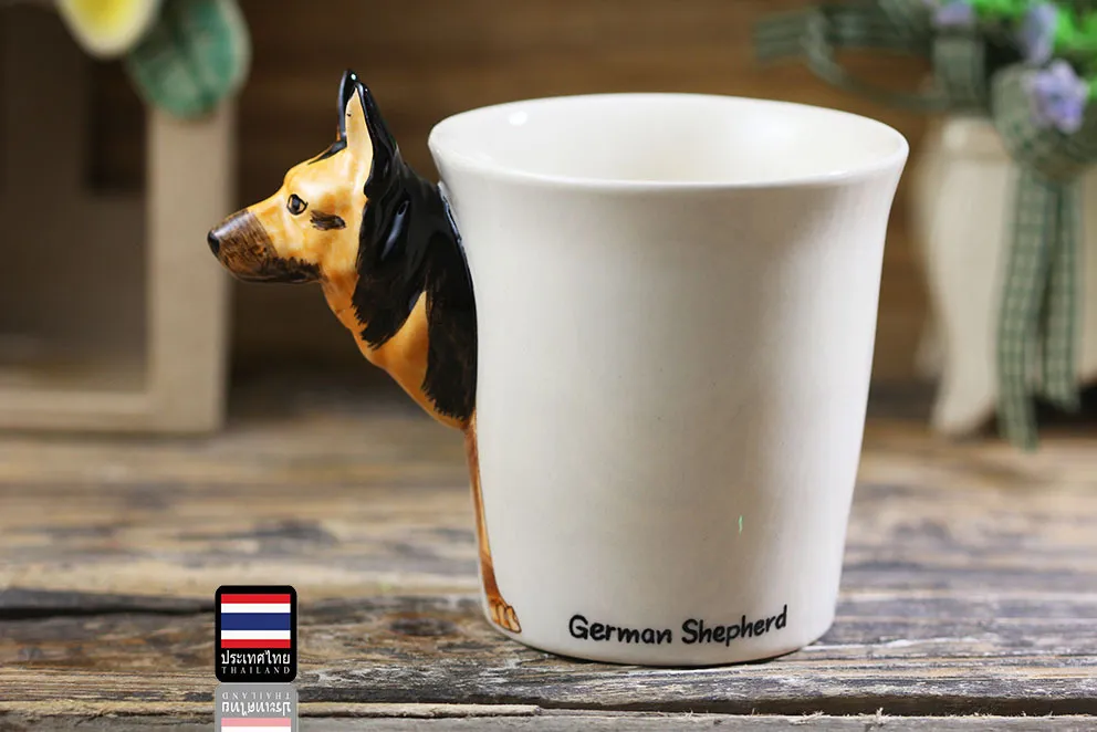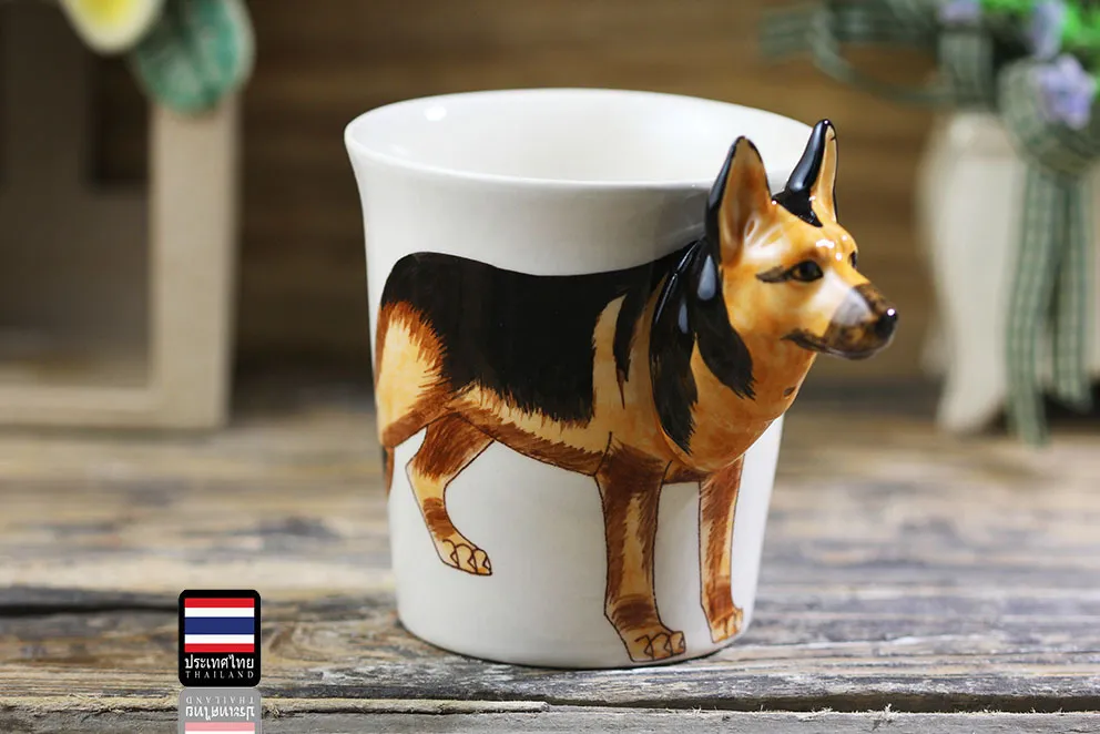 Thai Hand Painted Animal Mug German Shepherd Ceramic Cup