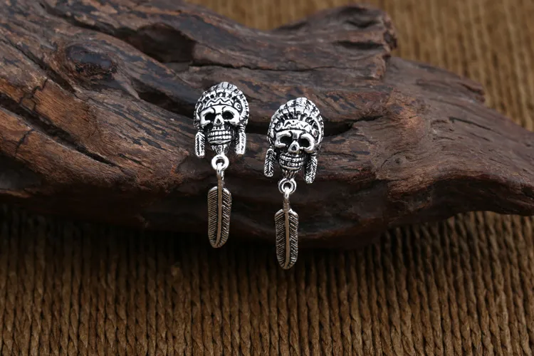 Why Choose Thai Silver Skull Feather Hanging Stud Earrings?