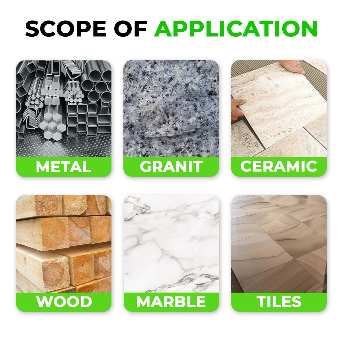 The cutting speed is high and the cut is flat. Whether you are cutting metal, wood, granite, stone, tile or glass, there is much less dust and sparks. No chipping or nasty smell, you cut everything in half the time.