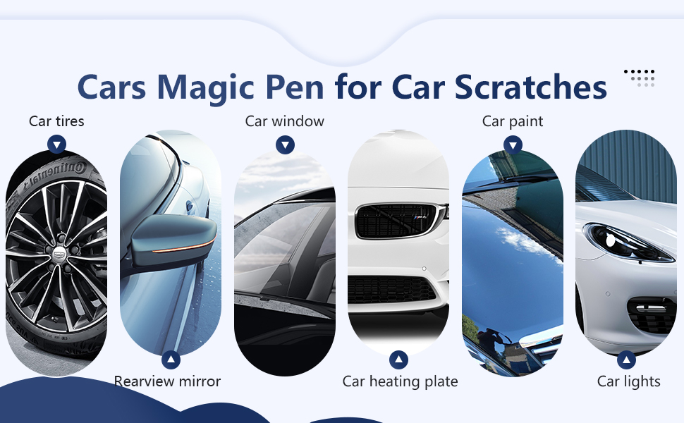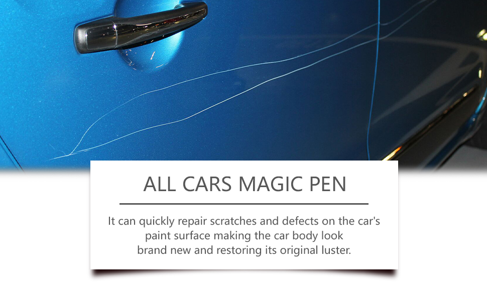 - All Cars Magic Pen:The All Cars Magic Pen uses an efficient formula that can quickly cover and repair small scratches, abrasions and scuffs on the paint surface, restoring the car body to a smooth new look