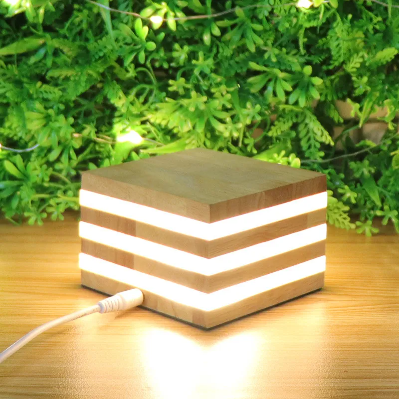 The New Night Light Creative Solid Wood LED Night Light New Strange Wooden Table Lamp Square Bedroom Bedside Lamp